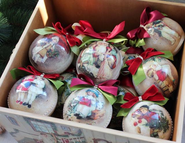 Стеклянные фабричные и самодельные новогодние игрушки — это классика. Они всегда смотрятся на ёлке эффектно, нарядно и дорого. Такую волшебную игру света может создать только стекло, и неважно, насколько оно задекорировано. Стеклянные игрушки для ёлки имеют только один существенный недостаток — они очень хрупкие, взрослые бояться давать их в руки детям (хотя на самом деле не менее опасно давать в руки пластиковые игрушки для ёлки). При бережном отношении стеклянные игрушки прослужат очень долго, особенно самодельные. В последнее время стало модно давать новую жизнь старым новогодним игрушкам. Не стоит спешить выбрасывать советские украшения для ёлки — можно попробовать задекорировать их совершенно по-новому.