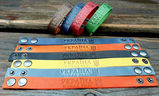 Брастети на руку з натуральної шкіри з написом Україна понад усе