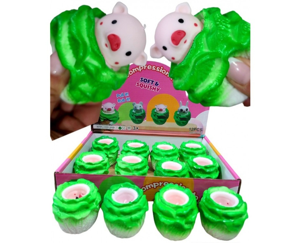 Антистрес Свинка в капусті - це м'яка і приємна на дотик іграшка. Її приємно м'яти в руках, вона допомагає зняти напругу, позбутися стресу. Після натискання іграшки відразу ж повертають початкову форму.