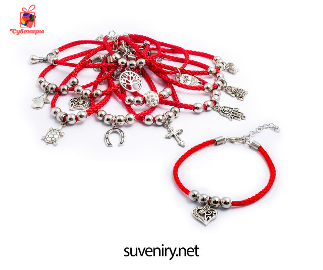 Червона нитка з красивими кулонами у вигляді квітів, сердечок, листочків і давніх символів — це стильний талісман, який гарантує захист свого власника від негативу, притягує везіння, процвітання і міцне здоров'я.